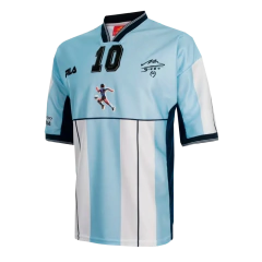 Camiseta de la selección Argentina, modelo utilizado en el partido homenaje al mejor jugador de la historia, Diego Armando Maradona, en 10/11/2001 en la bombonera.